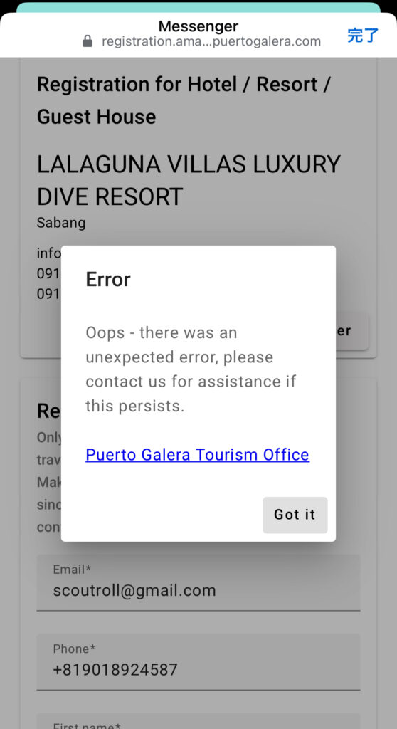これってもしや日本からじゃなくて現地からやらないとだめなのか?と思って現地でもやったんだけどだめだった。