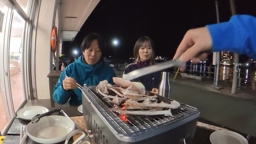 やったっていうか漁師の人がイカを差し入れに持ってきて、それをご馳走になっただけだけども。